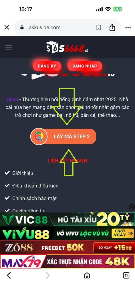Bước 3: Truy cập web kéo cuối trang, Bấm vào nút “LẤY MÃ STEP1” đợi load hết thời gian bạn “NHẤP VÀO LINK BẤT KỲ ĐỂ TIẾP TỤC” ,CLICK VÀO “LẤY MÃ STEP2”