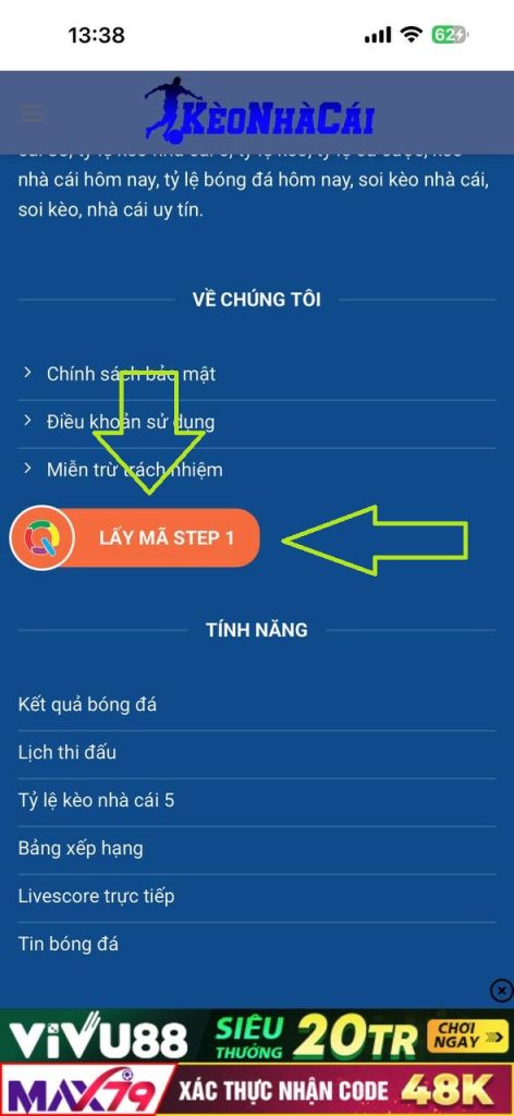 Bước 3: Truy cập web kéo cuối trang, Bấm vào nút “LẤY MÃ STEP1” đợi load hết thời gian bạn “NHẤP VÀO LINK BẤT KỲ ĐỂ TIẾP TỤC” ,CLICK VÀO “LẤY MÃ STEP2”