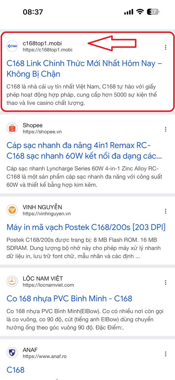 Trong kết quả tìm kiếm Google, hãy tìm website giống dưới hình: