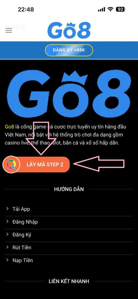 Bước 3: Truy cập web kéo cuối trang, Bấm vào nút “LẤY MÃ STEP1” đợi load hết thời gian bạn “NHẤP VÀO LINK BẤT KỲ ĐỂ TIẾP TỤC”, CLICK VÀO “LẤY MÃ STEP2”