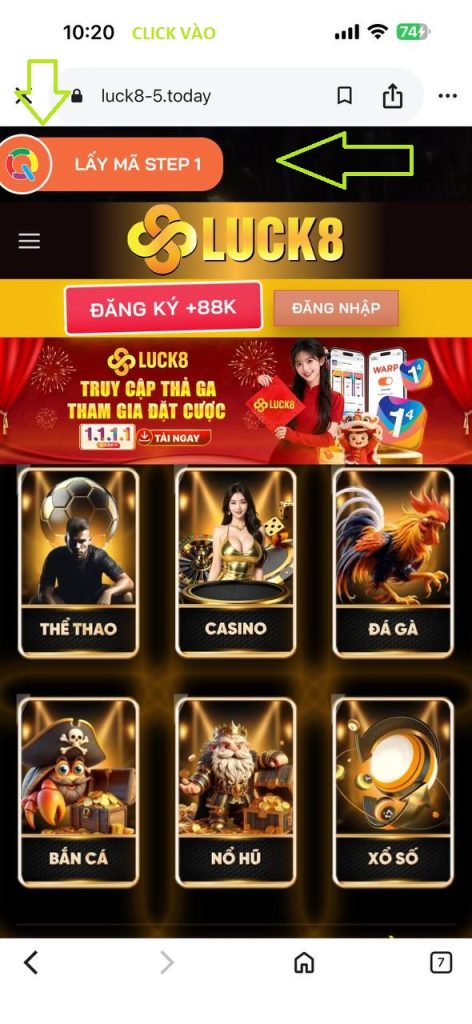 Bước 3: Truy cập web kéo cuối trang, Bấm vào nút “LẤY MÃ STEP1” đợi load hết thời gian bạn “NHẤP VÀO LINK BẤT KỲ ĐỂ TIẾP TỤC” , SAU ĐÓ CLICK VÀO “LẤY MÃ STEP2”