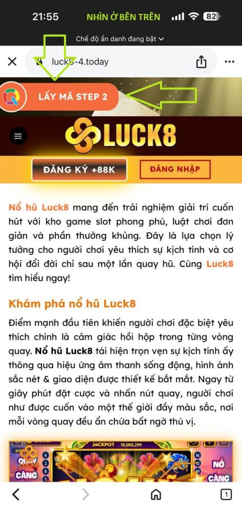 Bước 3: Truy cập web kéo cuối trang, Bấm vào nút “LẤY MÃ STEP1” đợi load hết thời gian bạn “NHẤP VÀO LINK BẤT KỲ ĐỂ TIẾP TỤC” , SAU ĐÓ CLICK VÀO “LẤY MÃ STEP2”