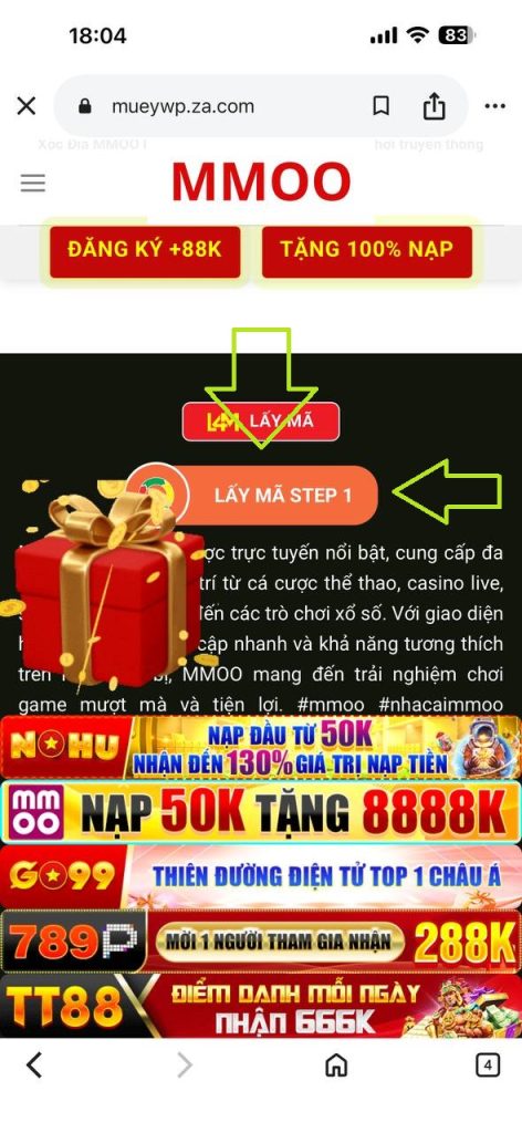 Bước 3: Truy cập web kéo cuối trang, Bấm vào nút “LẤY MÃ STEP1” đợi load hết thời gian bạn “NHẤP VÀO LINK BẤT KỲ ĐỂ TIẾP TỤC” ,CLICK VÀO “LẤY MÃ STEP2”