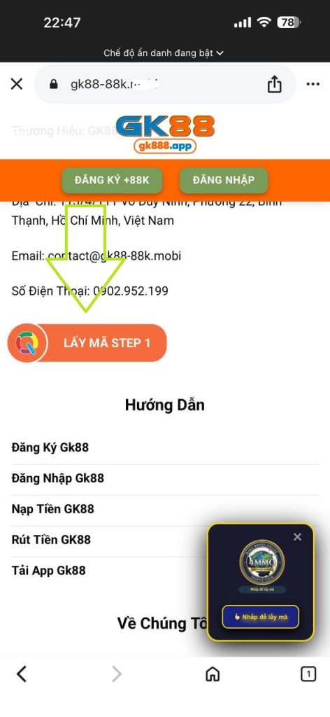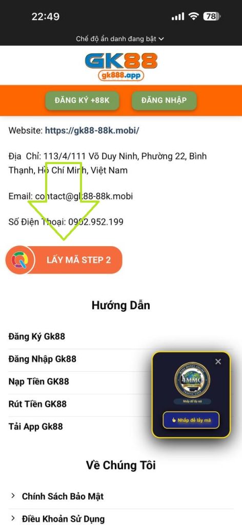 Bước 3: Truy cập web kéo cuối trang, Bấm vào nút “LẤY MÃ STEP1” đợi load hết thời gian bạn “NHẤP VÀO LINK BẤT KỲ ĐỂ TIẾP TỤC” , SAU ĐÓ CLICK VÀO “LẤY MÃ STEP2”