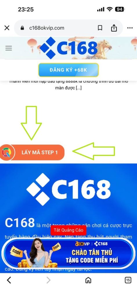 Bước 3: Truy cập web kéo cuối trang, Bấm vào nút “LẤY MÃ STEP1” đợi load hết thời gian bạn “NHẤP VÀO LINK BẤT KỲ ĐỂ TIẾP TỤC” , SAU ĐÓ CLICK VÀO “LẤY MÃ STEP2”