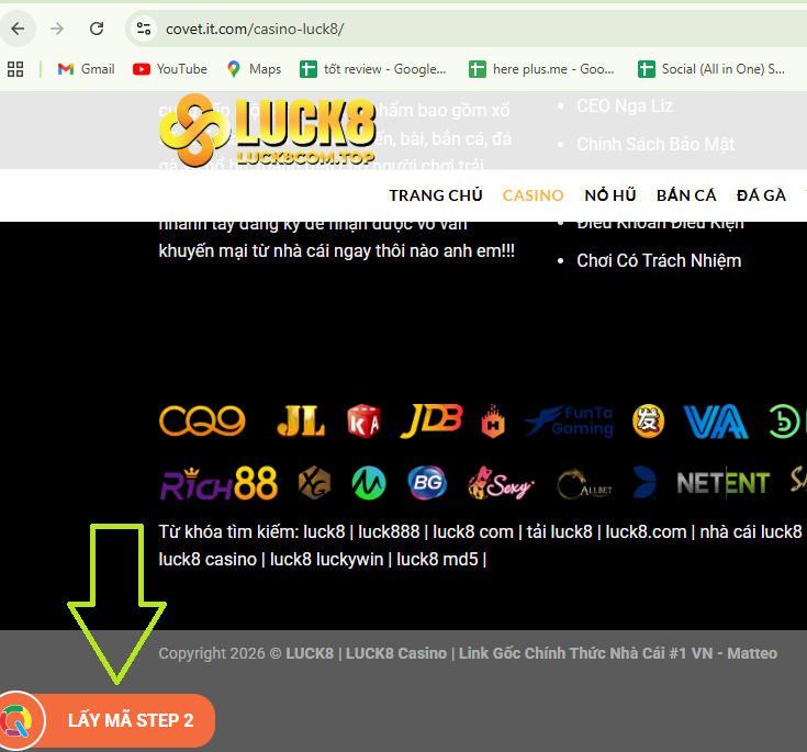Bước 3: Truy cập web kéo cuối trang, Bấm vào nút “LẤY MÃ STEP1” đợi load hết thời gian bạn “NHẤP VÀO LINK BẤT KỲ ĐỂ TIẾP TỤC” , SAU ĐÓ CLICK VÀO “LẤY MÃ STEP2”