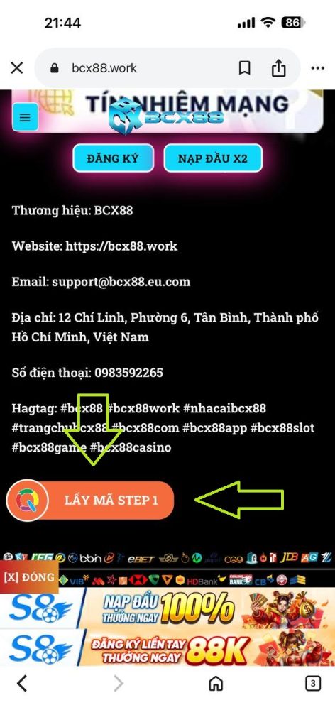 Bước 3: Truy cập web kéo cuối trang, Bấm vào nút “LẤY MÃ STEP1” đợi load hết thời gian bạn “NHẤP VÀO LINK BẤT KỲ ĐỂ TIẾP TỤC” , SAU ĐÓ CLICK VÀO “LẤY MÃ STEP2”