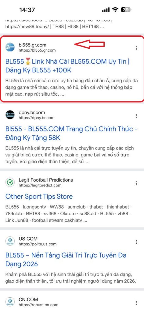 Trong kết quả tìm kiếm Google, hãy tìm website giống dưới hình: