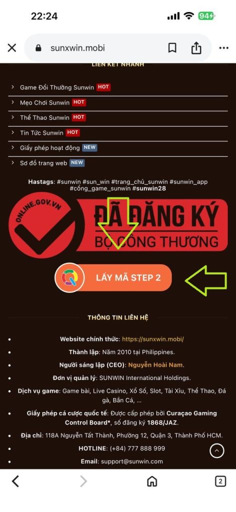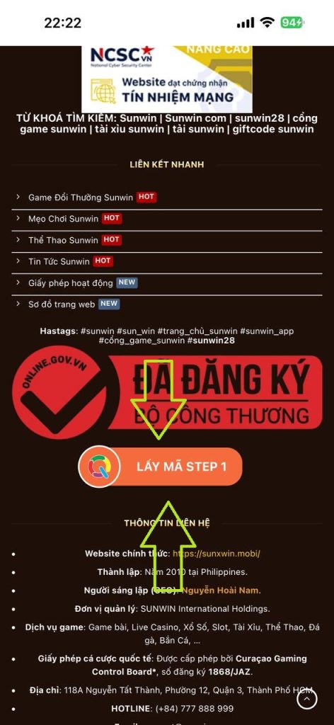 Bước 3: Truy cập web kéo cuối trang, Bấm vào nút “LẤY MÃ STEP1” đợi load hết thời gian bạn “NHẤP VÀO LINK BẤT KỲ ĐỂ TIẾP TỤC” , SAU ĐÓ CLICK VÀO “LẤY MÃ STEP2”
